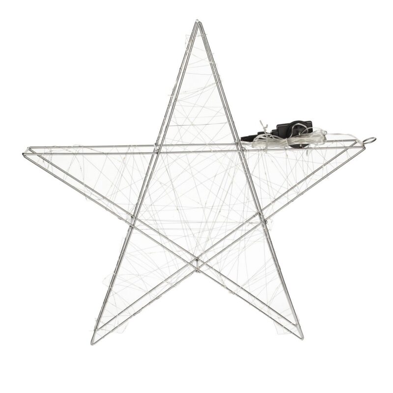 Svetelná dekorácia v tvare hviezdy.Vyzerá krásne zavesený na držiaku alebo umiestnený na komode, knižnici či parapete.Kovový tyčový rám je vybavený množstvom malých LED svetiel, ktoré po zapnutí jemne osvetľujú interiér.Dekorácia Shining Star vyzerá perfektne v spoločnosti ďalších sviatočných doplnkov.Rozmery: Š 58 cm, D 8 cm, V 58 cm.