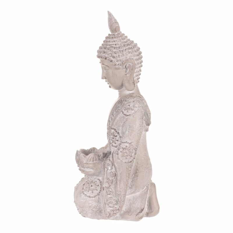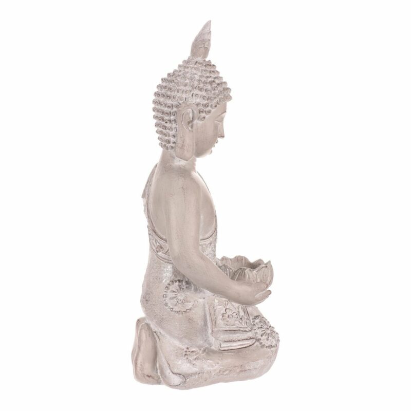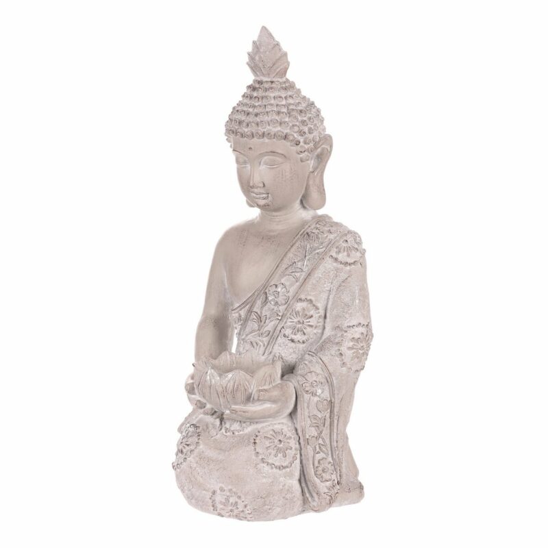 Dekorácia soška Budha kľačiaci, sivá, polyresin, 25 x 24 x 57 cm