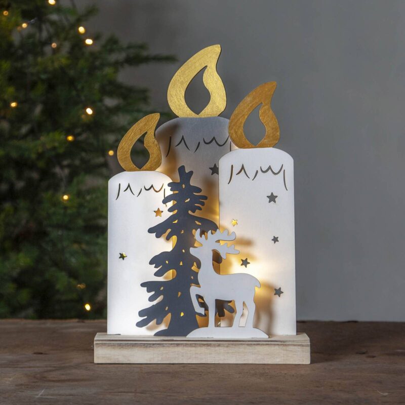 Dekoračná LED lampa Fauna a sviečky, strom a jeleň