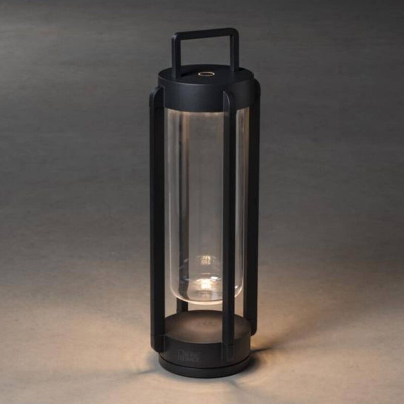 Stmievateľný LED lampáš Otranto s funkciou nabíjania cez USB Základňa svietidla je z čierneho hliníka. Vo vnútri svietidla sa nachádza sklenené tienidlo obklopené pevnými hliníkovými vzperami. Vďaka hodnotnej zmesi materiálov a modernému štýlu má Otranto veľmi osobitý charakter. Okrem toho zaujme zabudovanou technológiou. Integrovaná a výkonná nabíjateľná batéria umožňuje flexibilné používanie úplne nezávisle od elektrickej zásuvky. Okrem toho možno teplotu svetla nastaviť v dvoch stupňoch a jas v troch stupňoch pomocou malého prepínača na hlave svietidla, takže je možné dosiahnuť rôzne svetelné nálady. – Stmievateľné (10-150lm) – Teplota svetla nastaviteľná v dvoch stupňoch (2 700 K / 3 000 K) – vrátane nabíjacej prípojky USB