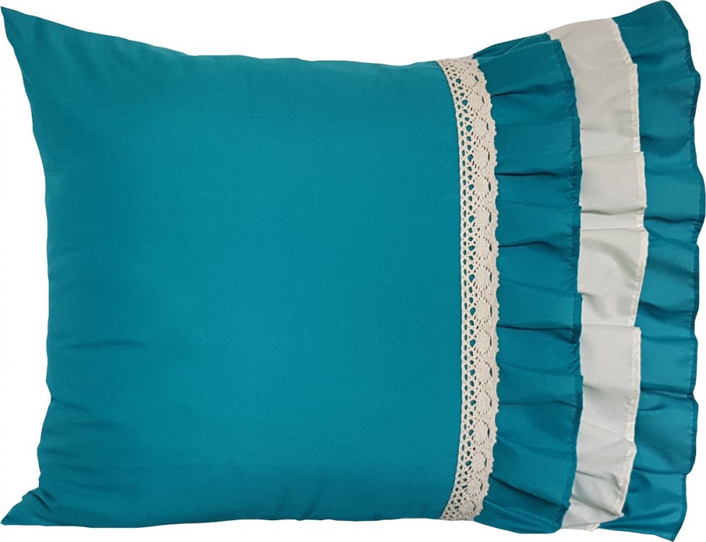 Dekoračná obliečka na vankúš tyrkysovej farby s čipkou 50 x 60 cm