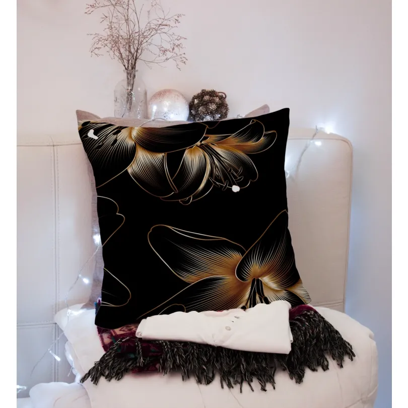 Dekoračná obliečka na vankúš v čiernej farbe s jemným vzorom kvetov Šírka: 50 cm | Dĺžka: 60 cm