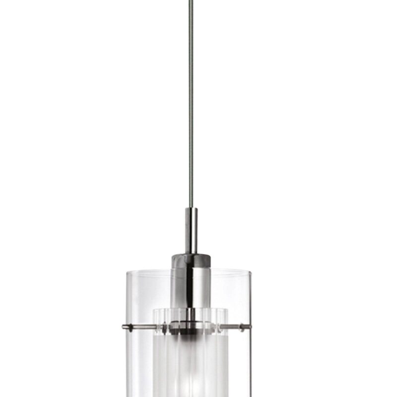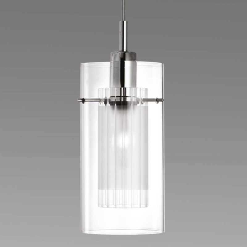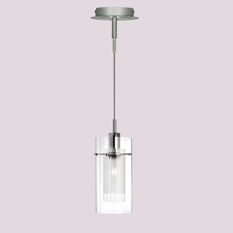 Závesné svetlo DUO je zdobené tienidlom z dvojitého skla Kyvadlo s mimoriadne atraktívnym skleneným tienidlom vyčnieva z chrómovanej stropnej ružice priamo pod stropom. Tienidlo na sklo bolo efektívne a príťažlivo navrhnuté z dvoch valcovitých skiel, ktorých vonkajšiu stranu tvorí číre sklo a vnútornú časť matné sklo, ktoré zakrýva svetelný zdroj. Môžu sa použiť energeticky úsporné žiarovky bez ovplyvnenia vonkajšieho vzhľadu závesného svetla.