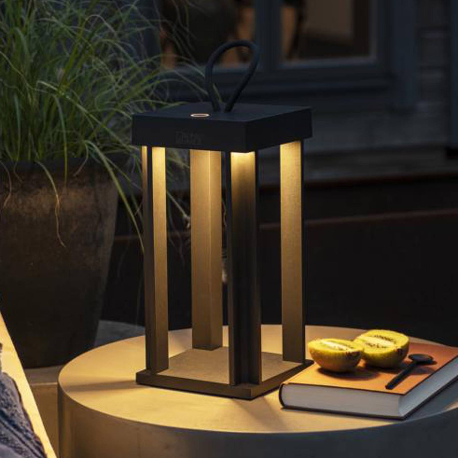 Dekoratívne svetlo Cannes LED s pripojením na nabíjanie cez USB Dekoratívne svetlo Cannes LED zaujme svojím moderným dizajnom v tvare lampáša. Základný rám svetla je vyrobený z pevného hliníka. Vďaka integrovanej nabíjateľnej batérii sa svetlo nabíja prostredníctvom USB pripojenia a môže sa používať samostatne na pozemku. Teplotu svetla možno prepínať v dvoch stupňoch (2 700 K a 3 000 K). Jas sa dá tiež nastaviť v troch stupňoch od 10 do 180 lm.
