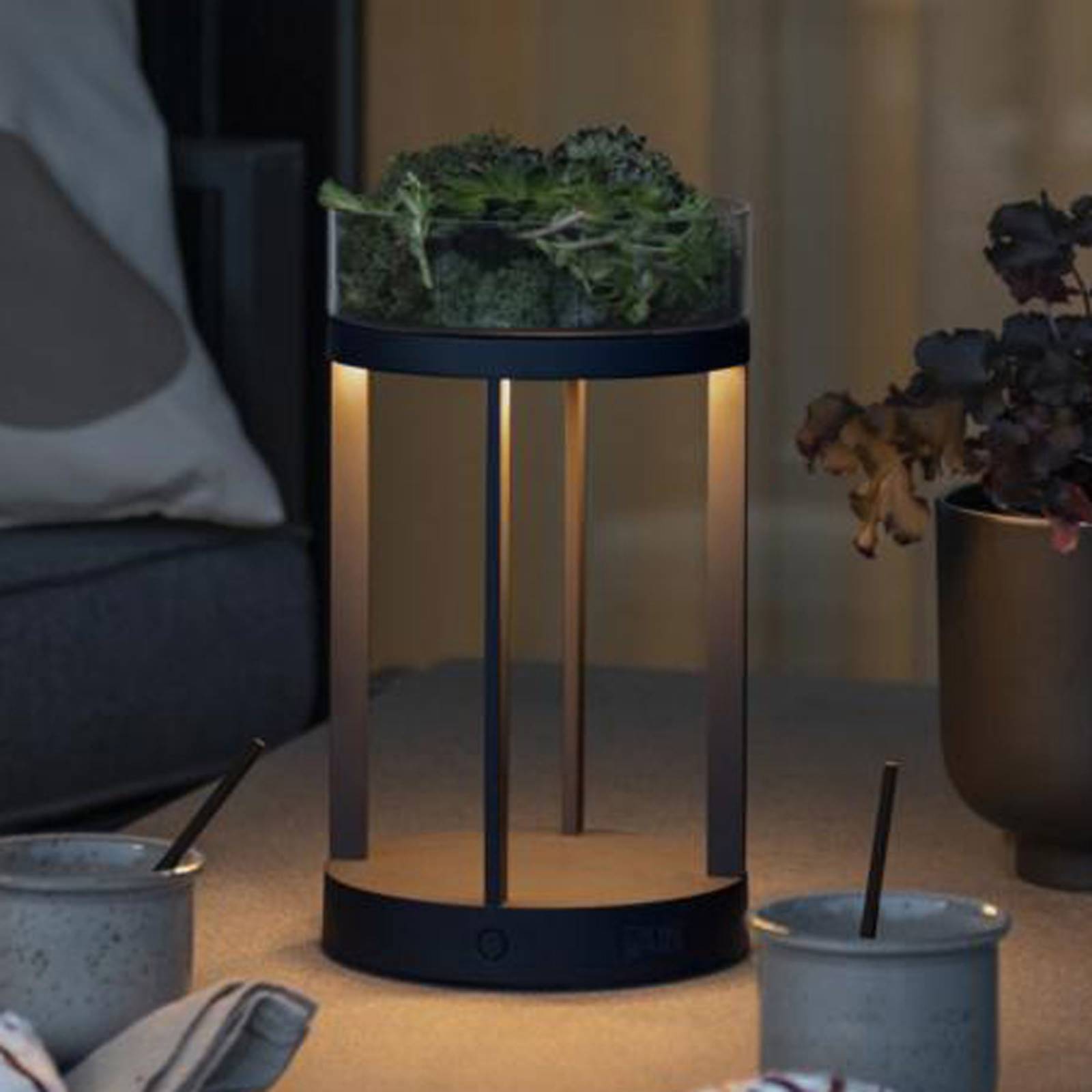 Dobíjacie dekoratívne svetlo LED Chieti vrátane sklenenej misky na dekoráciu Dekoratívne svetlo LED Chieti zaujme moderným tvarom svietidla a kvalitným výberom materiálov. Vďaka svojmu špeciálnemu vzhľadu je aj veľmi dekoratívne a zabudované funkcie z neho robia skutočného všestranného pomocníka. Odolný hliník vytvára dokonalý základ pre vonkajšie použitie, vďaka čomu svetlo odolá všetkým poveternostným podmienkam. Integrovaná nabíjateľná batéria umožňuje používanie mimo elektrických zásuviek, takže svetlo môže kedykoľvek a kdekoľvek vytvoriť príjemnú atmosféru. Súčasťou je sklenená miska na odkladanie náčinia alebo zdobenie – Nabíjanie pomocou nabíjacieho kábla USB – Stmievanie (10-124 lm) – Teplota svetla nastaviteľná v dvoch stupňoch (2 700 K / 3 000 K) – Súčasťou je sklenená miska na zdobenie