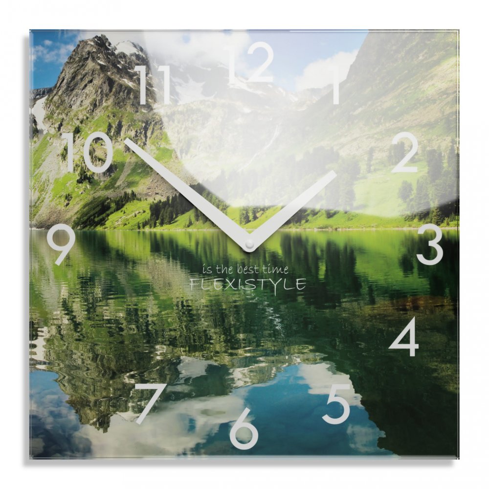 Dekoračné sklenené hodiny 30 cm s motívom horského jazera