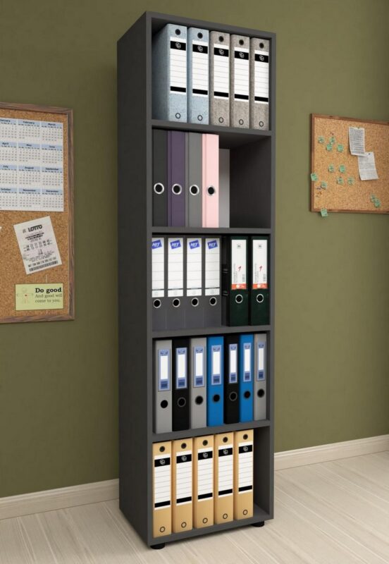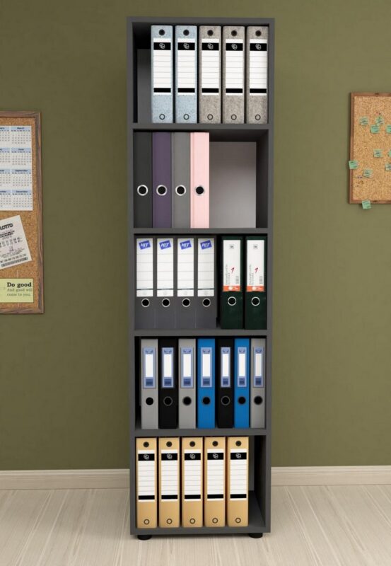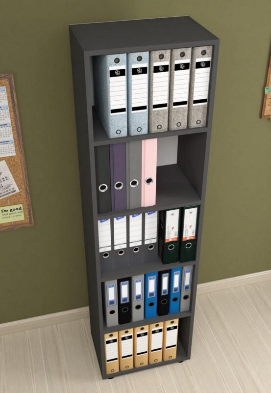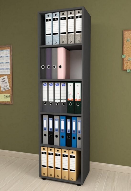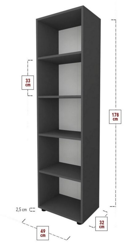 Moderný dizajnový regál DENISSA je v štýlovom a modernom prevedení. Je vhodný do pracovne, kancelárie či detskej izby.Tento dizajnový regál je vyrobený z kvalitnej LTD dosky, ktorá je nenáročná na údržbu. Hrúbka dosky – 18 mm. FArba: antracit.Rozmery:Výška produktu: 178 cmŠírka produktu: 49 cmHĺbka produktu: 32 cmVýška medzi policami: 33 cmVýška nohy: 2,5 cmDodávame v demontovanom stave.