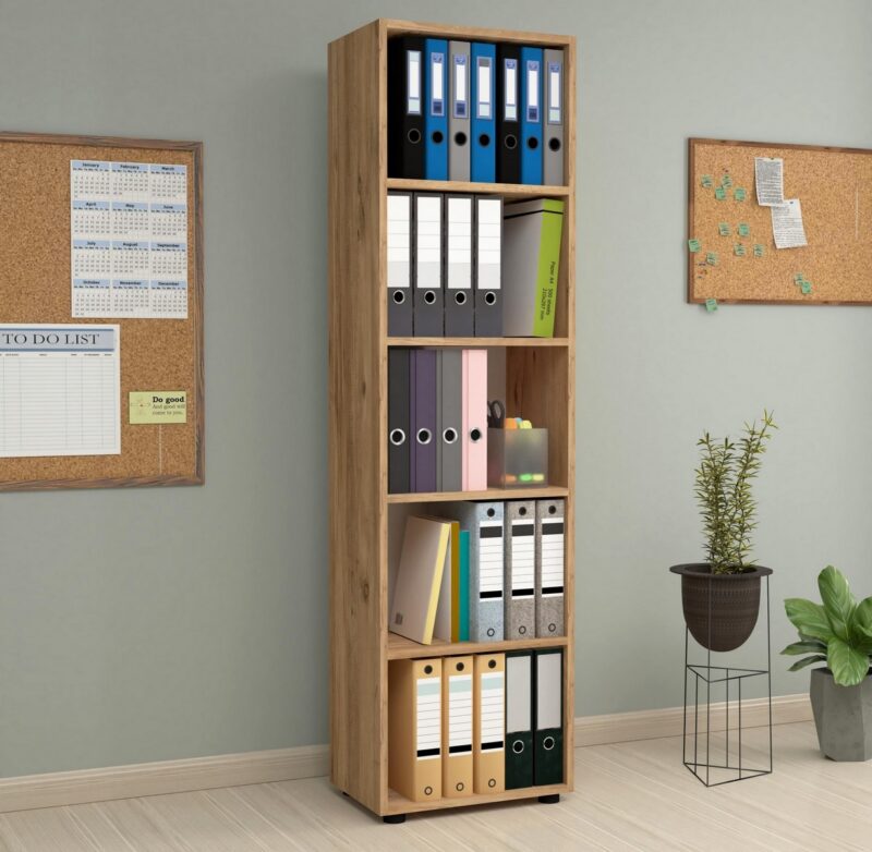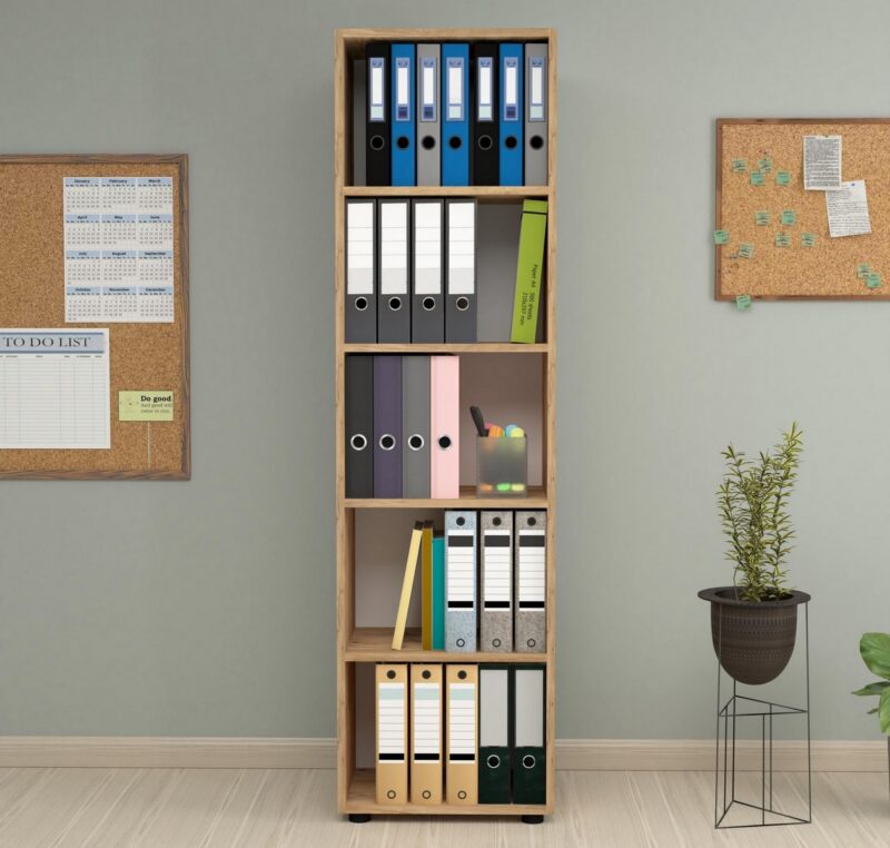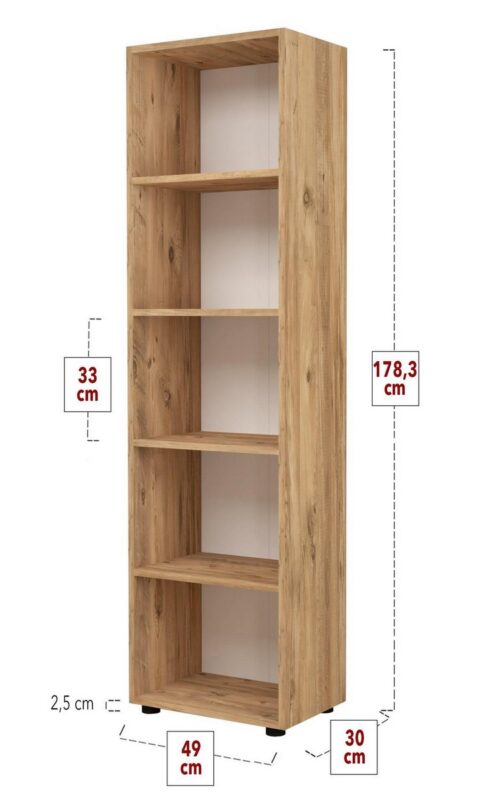 Moderný dizajnový regál DENISSA je v štýlovom a modernom prevedení. Je vhodný do pracovne, kancelárie či detskej izby.Tento dizajnový regál je vyrobený z kvalitnej LTD dosky, ktorá je nenáročná na údržbu. Hrúbka dosky – 18 mm. Farba: borovica.Rozmery:Výška produktu: 178 cmŠírka produktu: 49 cmHĺbka produktu: 32 cmVýška medzi policami: 33 cmVýška nohy: 2,5 cmDodávame v demontovanom stave.