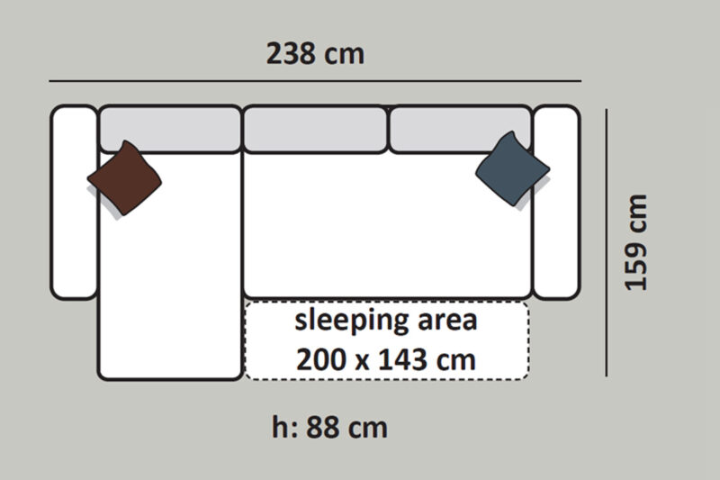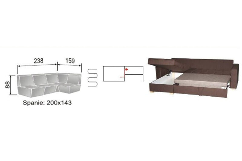 Rozkladacia sedačka DALLAS je spojením skvelého moderného dizajnu a elegancie. Vyniká nielen svojím vzhľadom, ale i praktickým spracovaním. Je vhodná do moderných typov interiérov.Sedák je tvorený kvalitnými vlnovcovými pružinami v kombinácii s PUR penou. Zabezpečuje tak maximálny komfort počas sedenia. Je čalúnená látkou Casablanca 2302.Sedačka disponuje praktickým úložným priestorom na uloženie vašej posteľnej bielizne a podobne. Po rozložení vám poskytne spaciu plochu o rozmere: 200 x 143 cm. Je vhodná na príležitostné spanie.Rozmery rohovej sedačky (š/h/v): 238 x 159 x 88 cm.Sedačka je univerzálna – je možné ju zložiť s pravým aj ľavým umiestnením rohu.