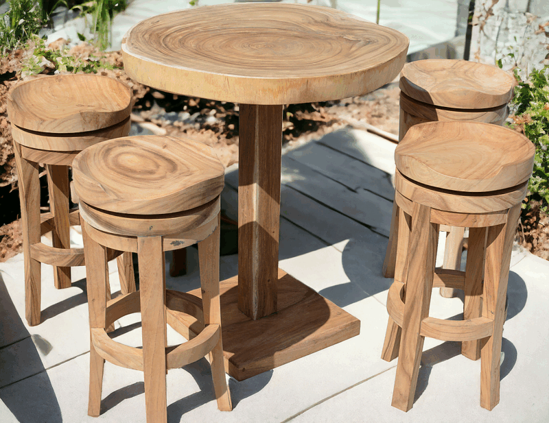Bar je vyrobený z tropického dreva suar. Svojou originalitou jednoducho doplní moderný štýl Vášho interiéru či exteriéru. Konštrukcia baru je vyrobená z masívneho suarového dreva vhodná do kuchyne, jedálne, obývačky či pod pergolu. Veľmi stabilná a pevná konštrukcia. Povrch je precízne vyleštený, na dotyk pôsobí veľmi príjemne. Barová stolička (otočný sedák) je vyrobená z tropického dreva suar. Svojou originalitou jednoducho doplní moderný štýl Vášho interiéru. Moderná barová stolička z nábytkovej rady TRUNK. Konštrukcia stoličky je vyrobená z masívneho suarového dreva vhodná do kuchyne, jedálne aj obývačky. Veľmi stabilná a pevná konštrukcia.