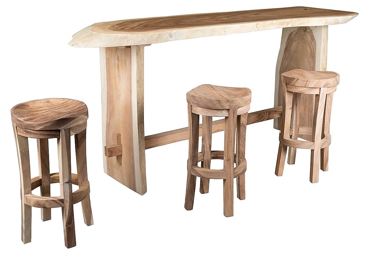 Originálny drevený bar je vyrobený z tropického stromu SUAR. Barové stoličky TRUNK. Masívna doska a nohy. Svojou originalitou jednoducho doplní moderný štýl Vášho interiéru. Doska baru je precízne vyleštená, na dotyk pôsobí veľmi príjemne. Sila dosky 6 cm. Bar je vhodný na terasu alebo do pergoly.
