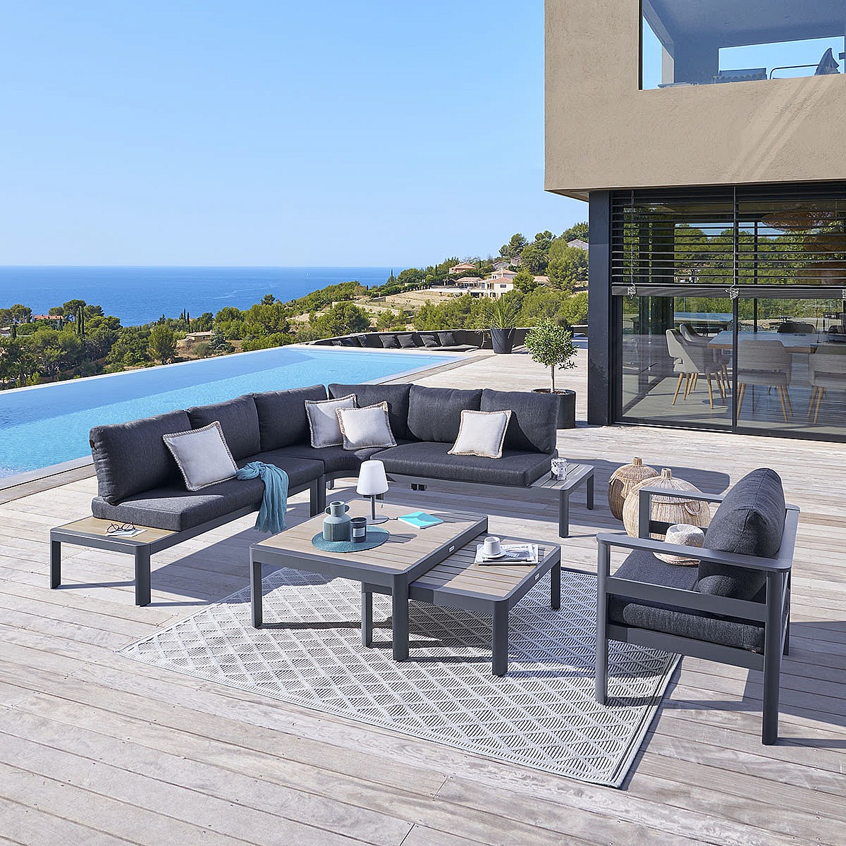 DEOKORK Hliníková zostava NEW YORK pre 6 osôb (antracit) vzorový kus