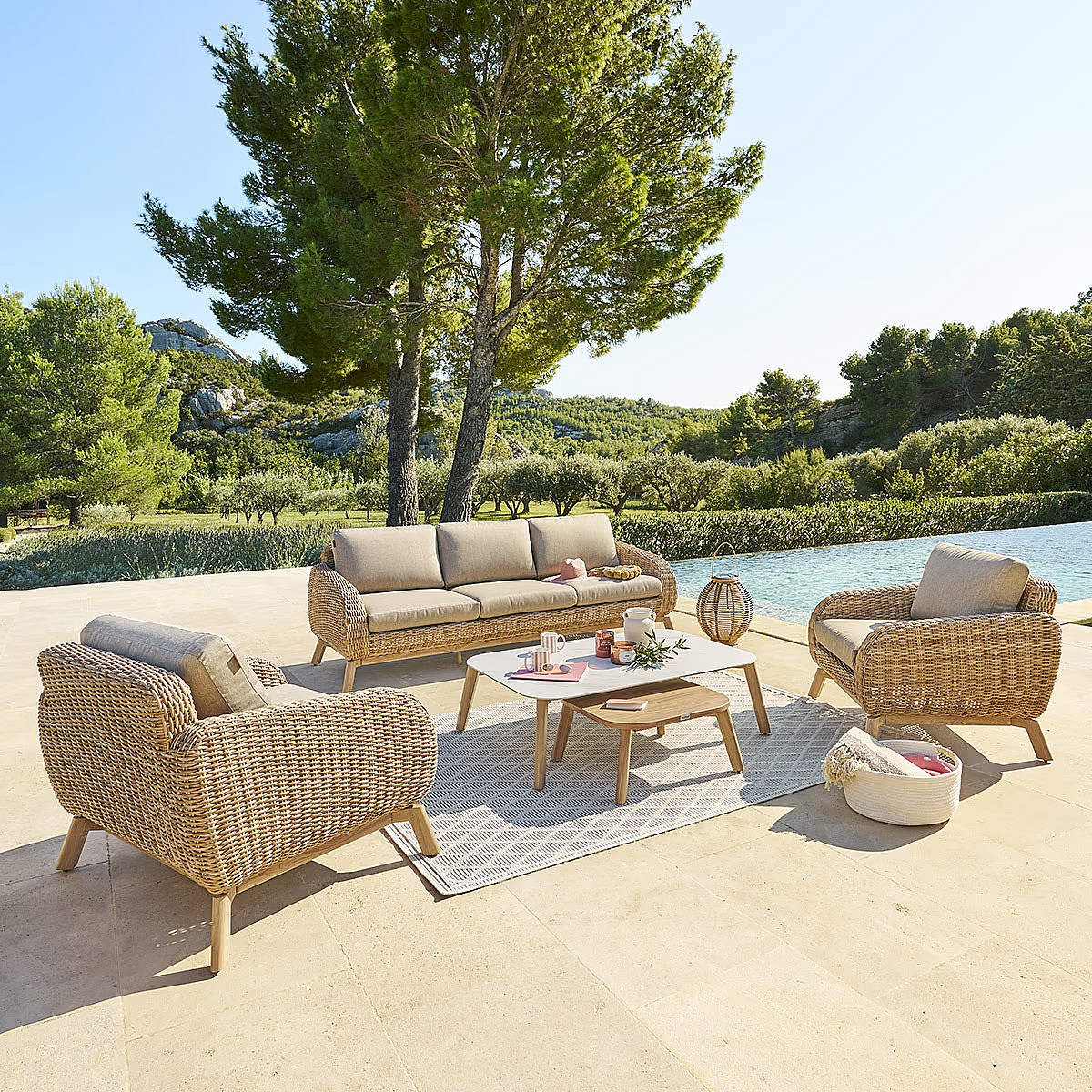 Robustná ratanová zostava z kolekcie SUNSHINE na chvíle odpočinku na záhrade.