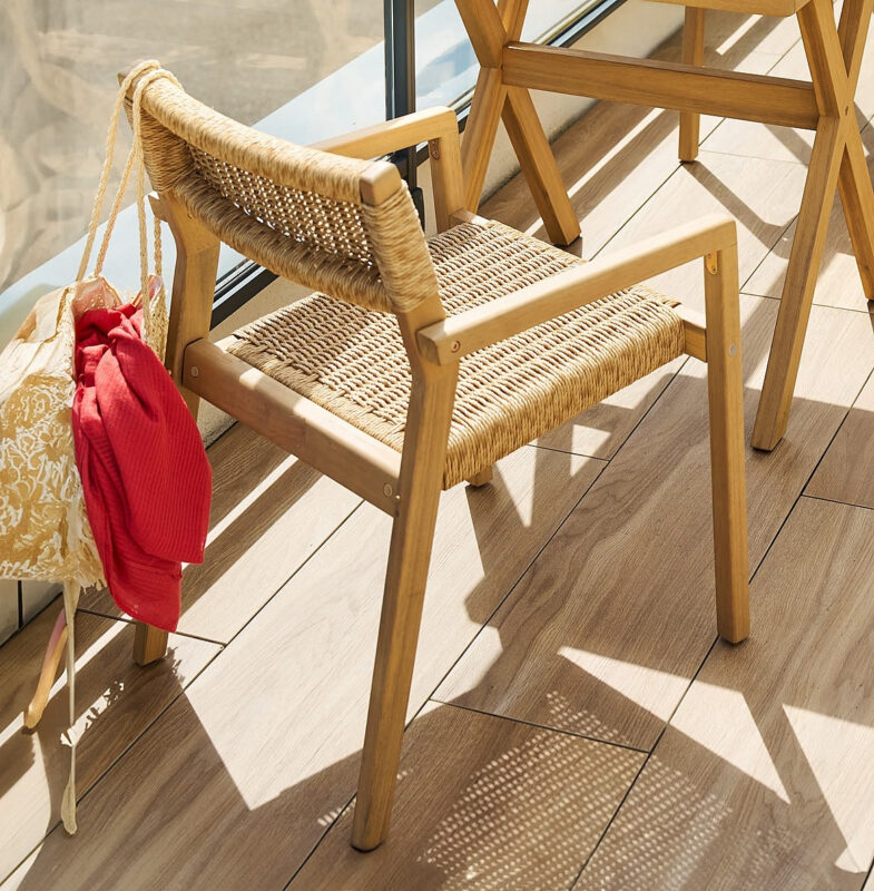 Záhradné kreslo z exotickej dreviny akácie má všetko, čo tvorí atmosféru prírodného posedenia.