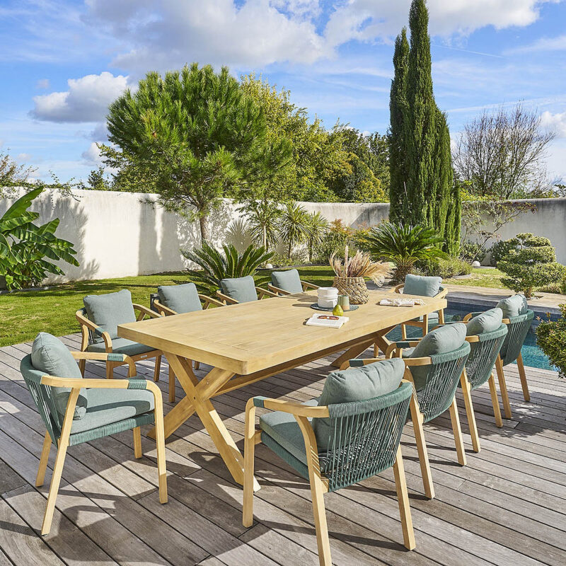 Záhradné kreslo z exotickej dreviny akácie má všetko, čo tvorí atmosféru prírodného posedenia.