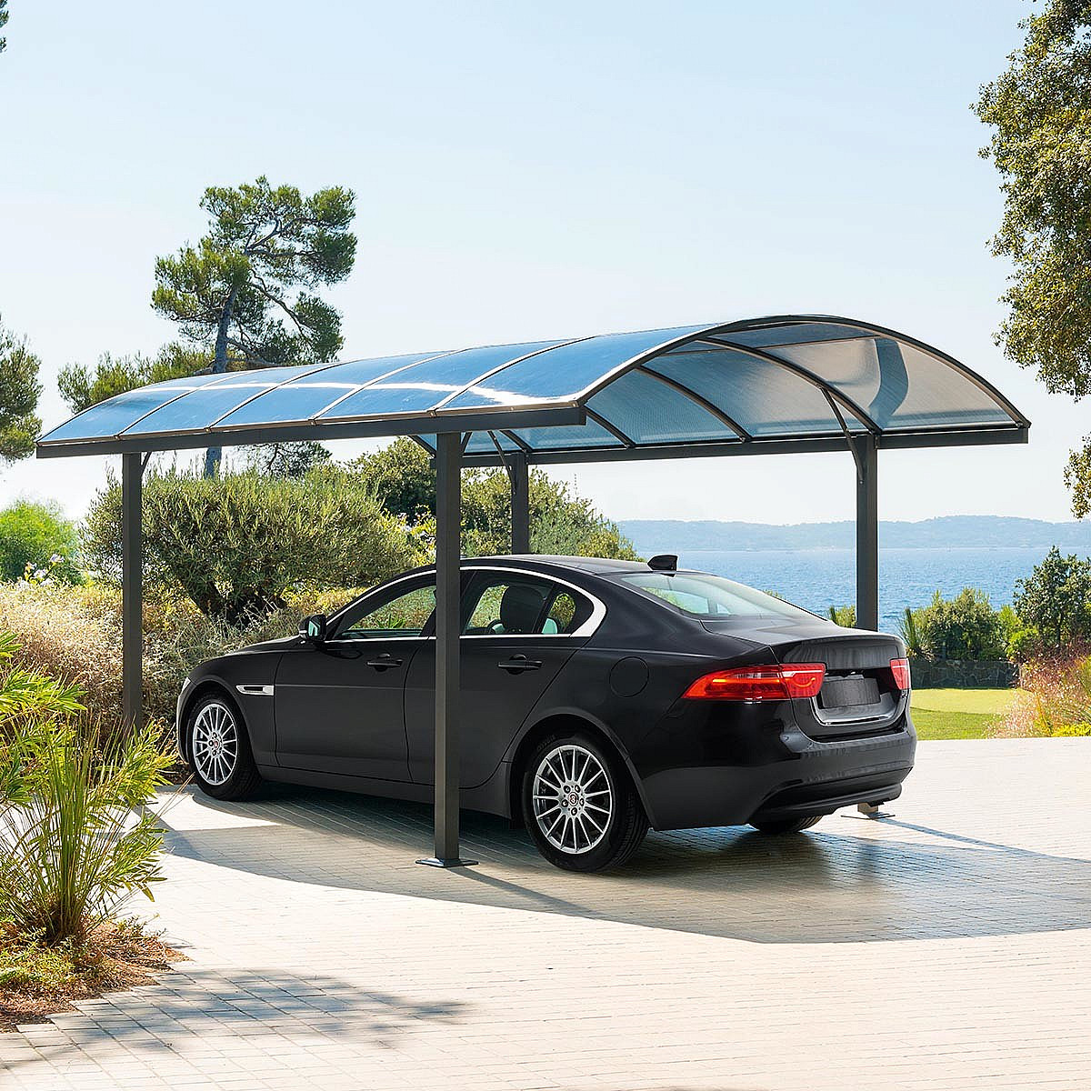 Dizajnový vonkajšie prístrešok z ocele, hliníka a polykarbonátu. Pod prístreškom je vaše auto stále v suchu chránené pred dažďom a znečistením. Do umývačky zájdete raz za čas a zimu dáte skoro bez škrabanie. Nestrácajte čas: naštartujte a rovno vyrazte! Ideálne riešenie, keď nemáte priestor na garáž.