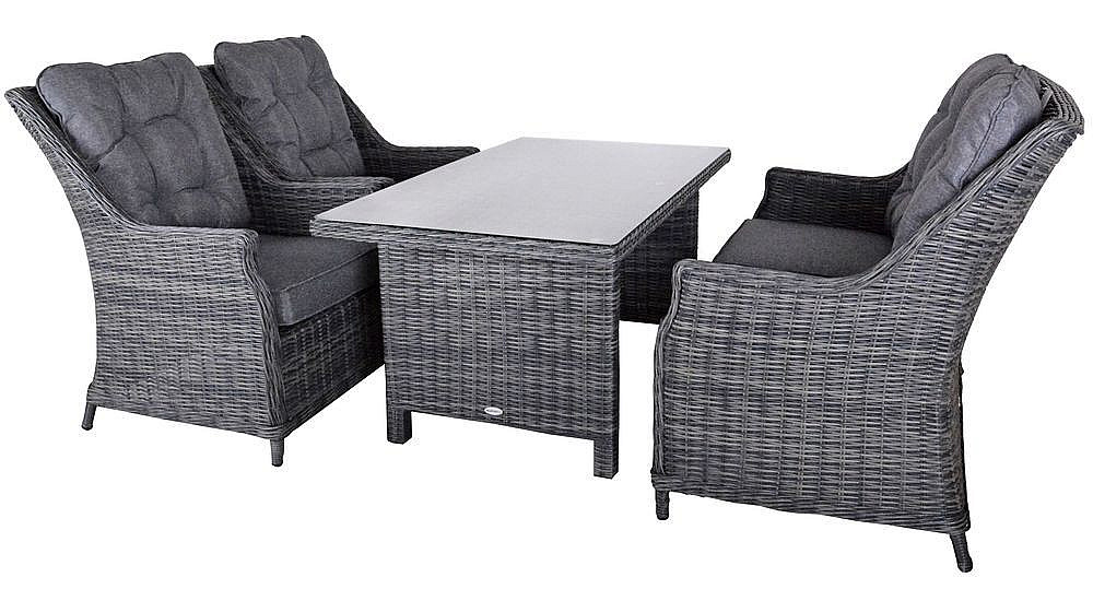 Luxusná súprava z kvalitného umelého ratanu, ktorý odoláva UV žiareniu a teplote od 50 °C do -10 °C.