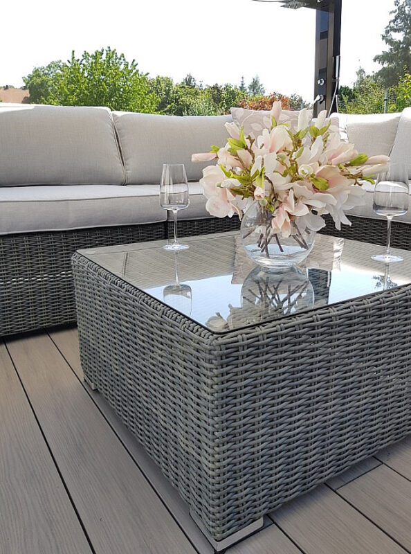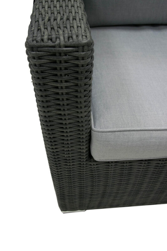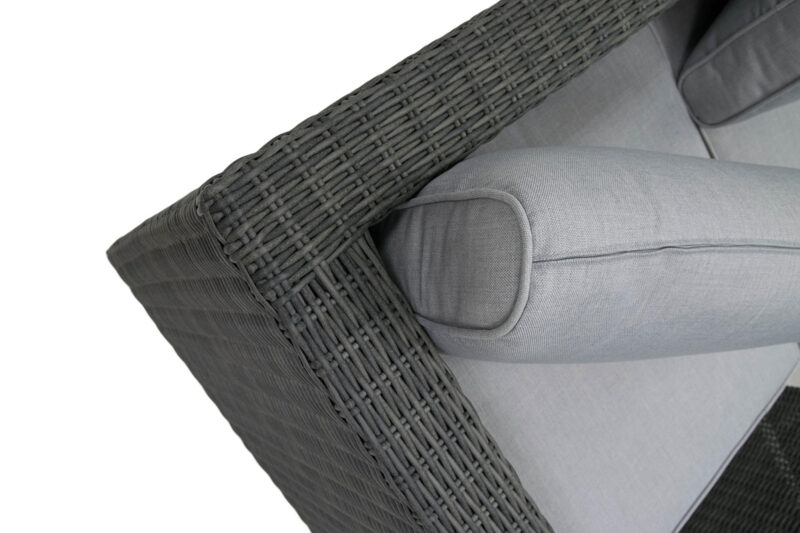 Ratanový nábytok z kolekcie modulových setov, ktorý vyniká svojou variabilitou.Zostavte si súpravy podľa Vašich predstáv.Umelý ratan sa pýši svojím nadčasovým dizajnom a takmer nulovú údržbou. Polyetylénové vlákno sa vyznačuje vysokou pružnosťou, pevnosťou a odolnosťou voči vlhkosti i UV žiareniu. Je odolný voči povětrmostním podmienkam a je vhodný na celoročné státie vonku (odporúčame pod zastrešením alebo ochranným obalom v zimných mesiacoch). Umelý ratan je ľahký, takže zaisťuje pohodlnú manimulaci záhradného nábytku po záhrade či terase.Konštrukcia je vyrobená z robustnej hliníkovej konštrukcie, ktorá je zvarená tak, aby zaistila vysokú nosnosť jednotlivých prvkov. Hliník sa vyznačuje vysokou odolnosťou a pevnosťou. Nedochádza ku korózii.Polstrovanie je v sile 10 cm, jedná sa o látku s hustotou 220 g/m2. Lemovanie po krajoch. Penová výplň. Všetky podušky sú vybavené zipsom. Možnosť prania v práčke na 40 ° C bez aviváže.