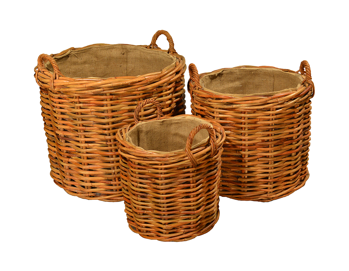 Ratanový set prútených koša z prírodného ratanu. Ratan je vďaka silnému Ø 15 mm odolný voči poveternostným podmienkam aj mrazu. Teda ho možno využiť v interiéri, ale aj v exteriéri ako napr. obal na kvetináč, apod.