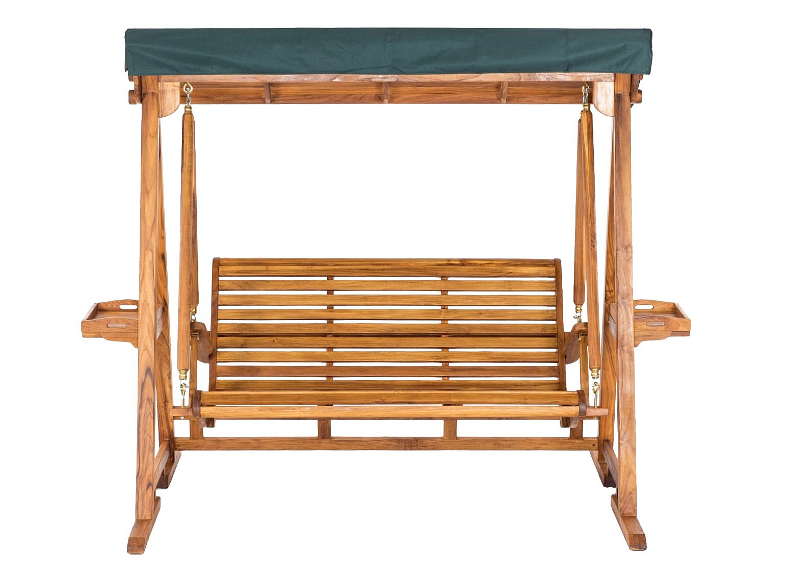 Záhradná hojdačka AVANTI je vyrobená z prvotriedneho jadrového indonézskeho teaku. Vonkajšia hojdačka má výrazný a pôsobivý vzhľad vďaka detailnému spracovaniu jednotlivých častí. Strechu je možné jednoducho natáčať podľa potreby zatienenia. Ku komfortu prispievajú aj snímateľné podnosy. Súčasťou je aj veľmi praktická plachta cez strechu v zelenej farbe. Na výber máme aj iné rozmery drevenej hojdačky. Ošetrené teakovým olejom.