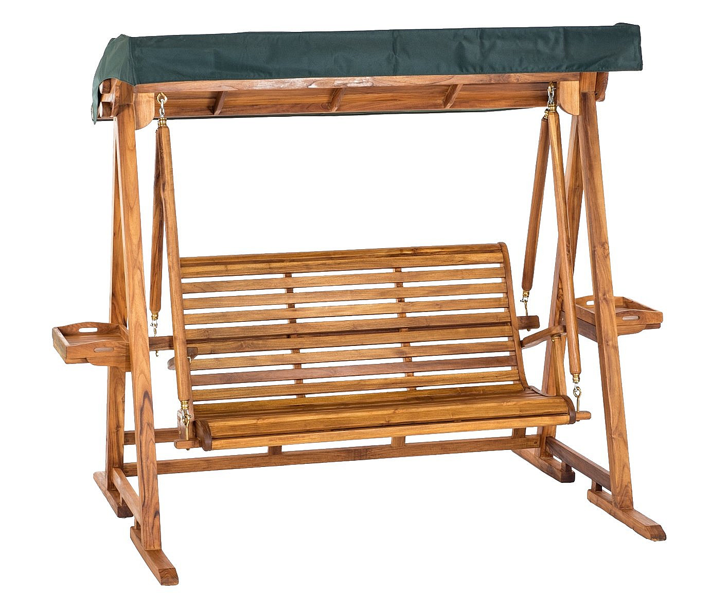 Záhradná hojdačka AVANTI III je vyrobená z prvotriedneho jadrového indonézskeho teaku. Vonkajšia hojdačka má výrazný a pôsobivý vzhľad vďaka detailnému spracovaniu jednotlivých častí. Strechu je možné jednoducho natáčať podľa potreby zatienenia. Ku komfortu prispievajú aj snímateľné podnosy. Súčasťou je aj veľmi praktická plachta cez strechu v zelenej farbe. Ošetrená teakovým olejom.