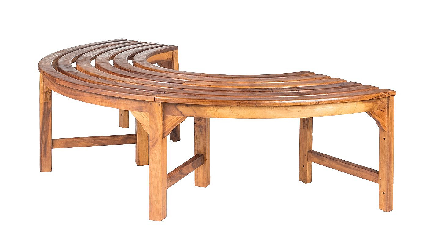Záhradná stromová lavica AGNES III z kvalitného jadrového teaku. Precízne spracovaná drevená lavica z teaku s vnútorným priemerom 95 cm. Vhodná ako lavička okolo stromov. Vďaka použitiu stolárskych kolíkov je táto nádherná lavica pevná a stabilná. Celý kruh okolo stromu vytvorí dva kusy. Náš záhradný nábytok je určený hlavne na vonkajšie použitie. Ošetrené teakovým olejom. Na prianie zákazníka je možné dodať aj v prírodnej neošetrenej verzii. V našej ponuke nájdete aj stromovú lavicu Agnes s oporným chrbtom. Cena je za jeden polkruh.