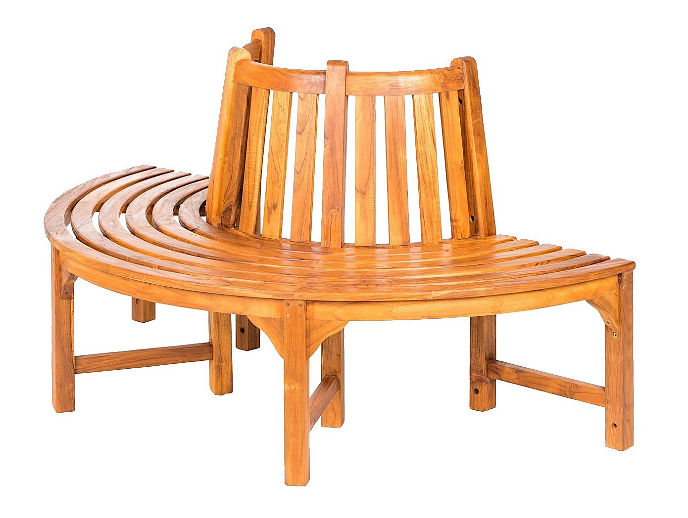 Záhradná stromová lavica AGNES vyrobená z kvalitného jadrového teaku. Vďaka použitiu stolárskych čapov, dlabu a kolíkov, je táto nádherná lavica pevná a stabilná. Precízne spracovaná drevená lavica s vnútorným priemerom 81 cm. Vhodná ako lavička okolo stromov. Celý kruh okolo stromu vytvorí dva kusy. Náš záhradný nábytok je určený hlavne na vonkajšie použitie. Ošetrené teakovým olejom. Cena je za jeden polkruh.