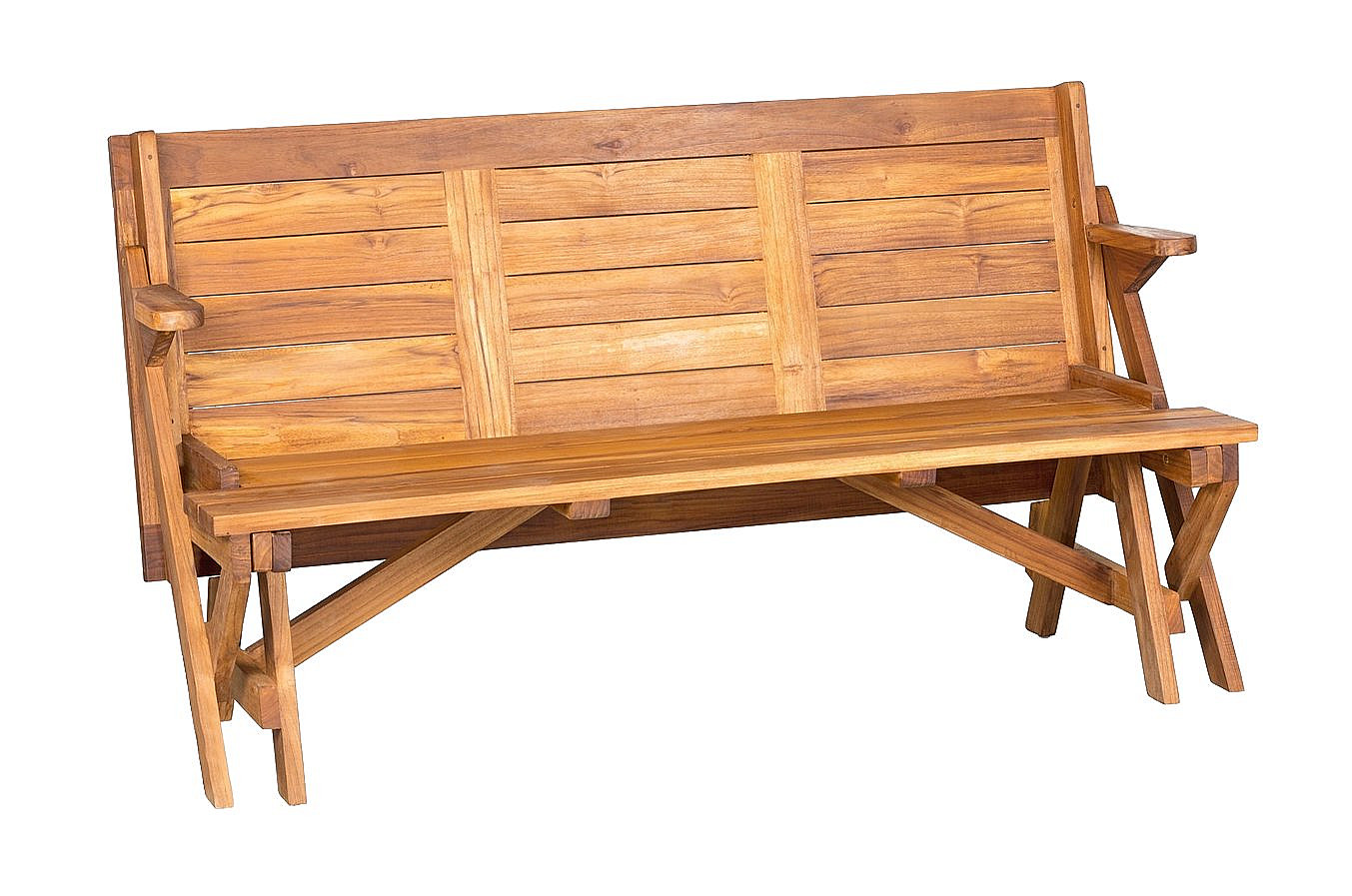 Rozkladacia lavica, z ktorej sa jednoduchým rozložením stane stôl. Vyrobená z kvalitného jadrového teaku s dokonalým dielenským spracovaním. Lavica má rozmery 176 x 63 x 93 cm a stôl má rozmery 176 x 141 x 81 cm. Náš záhradný nábytok je navrhnutý hlavne na vonkajšie použitie s dlhou životnosťou. Je možné kombinovať s našimi stolmi, alebo samostatne v záhrade či na terase. Ošetrené teakovým olejom.