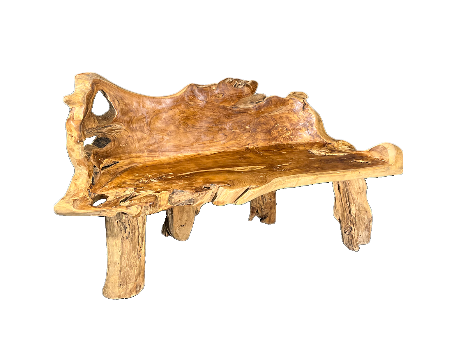 Teaková lavica ROOT II je vyrobená z jedného kusu koreňa teakového stromu. Každá drevená lavica je svojím prevedením unikátna a výnimočná. Svojou originalitou poslúži ako nádherná dekorácia vo Vašej záhrade, prípadne doplní aj moderný štýl Vášho interiéru.