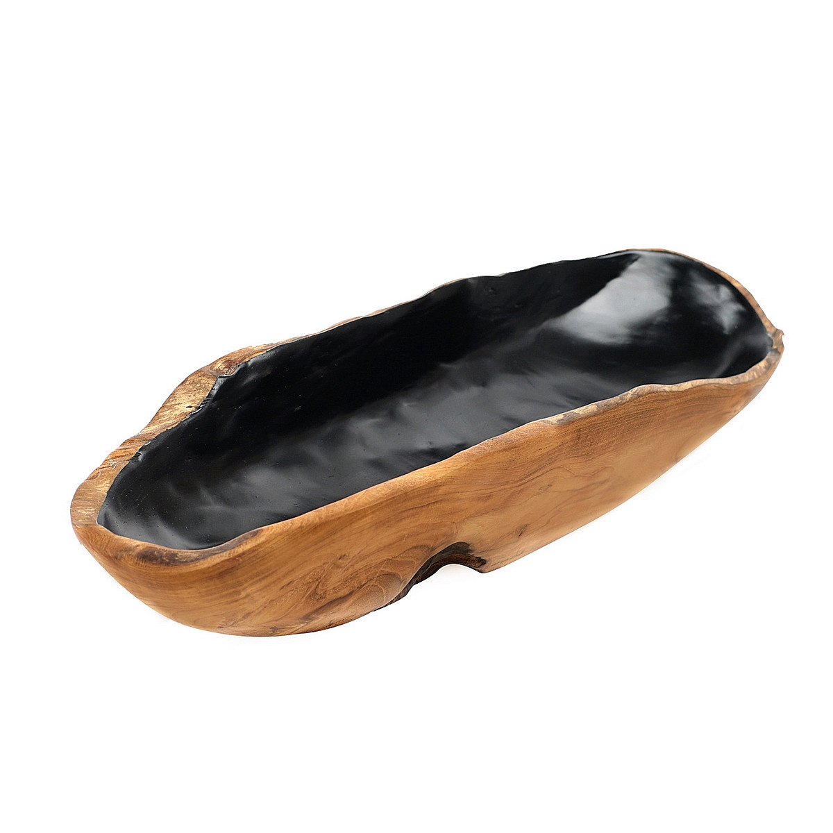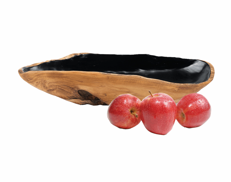 Prekrásna miska DORITO z jadrového teaku. Miska je ručne vyrezávaná a všetky ostré hrany sú veľmi hladko dobrúsené. Prirodzenú krásu dreva vyzdvihujú rôzne línie a rysy. Ošetrené niekoľkými vrstvami potravinárskeho minerálneho oleja a vnútro misky dofarbené čiernou farbou. Miska je balená do špeciálneho textilného vrecka a krabice z recyklovaného materiálu. Má veľmi všestranné využitie a stane sa skutočnou ozdobou vášho domova. Kombinácia dreva a čiernej farby vyzerá luxusne. Každá miska je originál, veľkosť môže byť preto nepatrne iná.