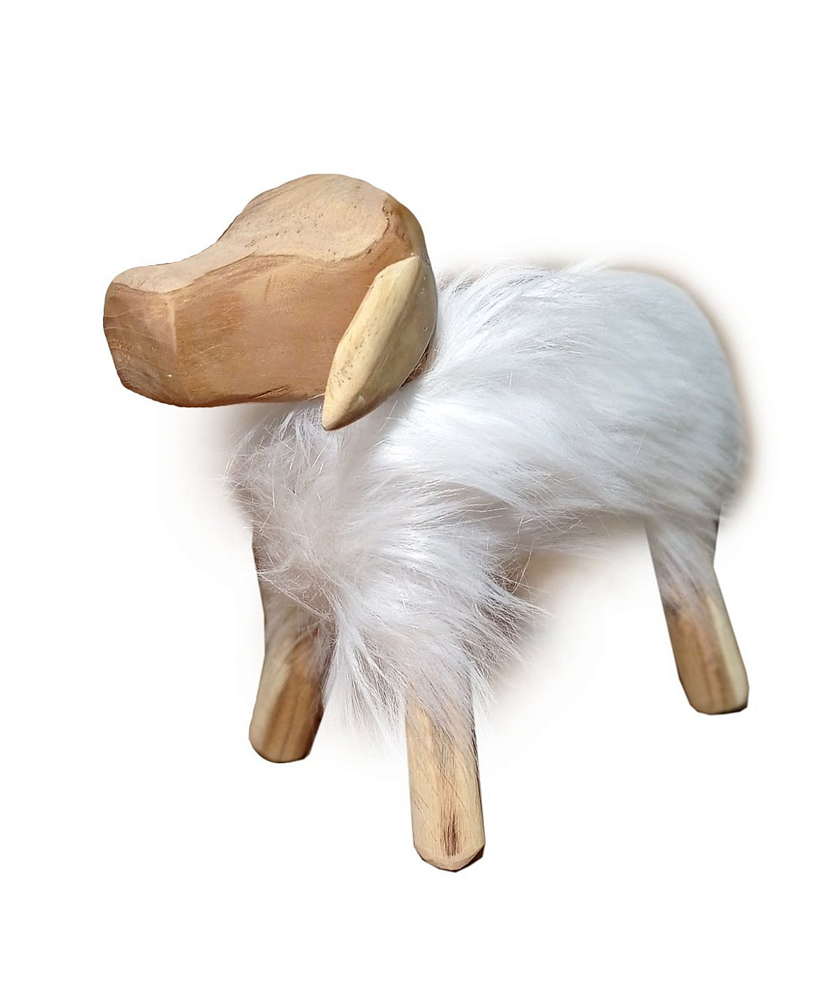Ovce vyrobená z tropického dreva. Pekná ručná práca. Telo je vyrobené z teakového dreva, srsť zo syntetického vlákna. Veľmi príjemná na dotyk ako dekorácia do Vášho domova.