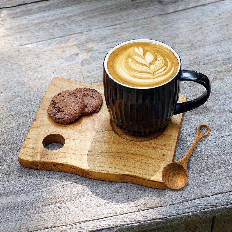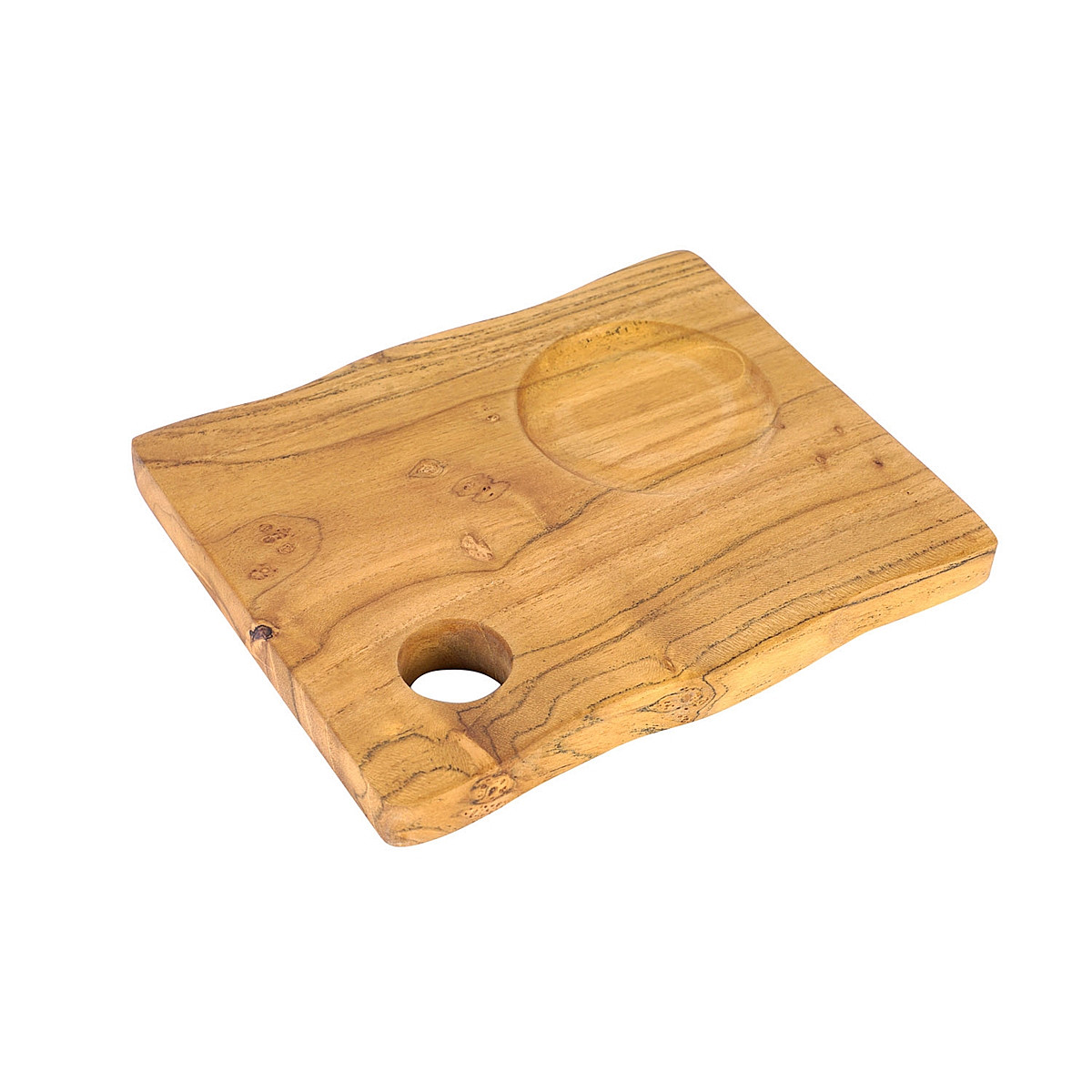 Teaková tácka TORAJA vyrobená špeciálne na šálku kávy. Starostlivá ručná práca. Všetky hrany sú veľmi hladko dobrúsené. Príjemné zvlnenie hrán tácky. Uloženie šálky je ručne vybrúsené. Na zlepšenie vlastností dreva ošetrené minerálnym olejom potravinárskej kvality. Veľmi pekná dekorácia do vašej kuchyne. Tácka je balená do špeciálneho textilného vrecka a krabice z recyklovaného materiálu.