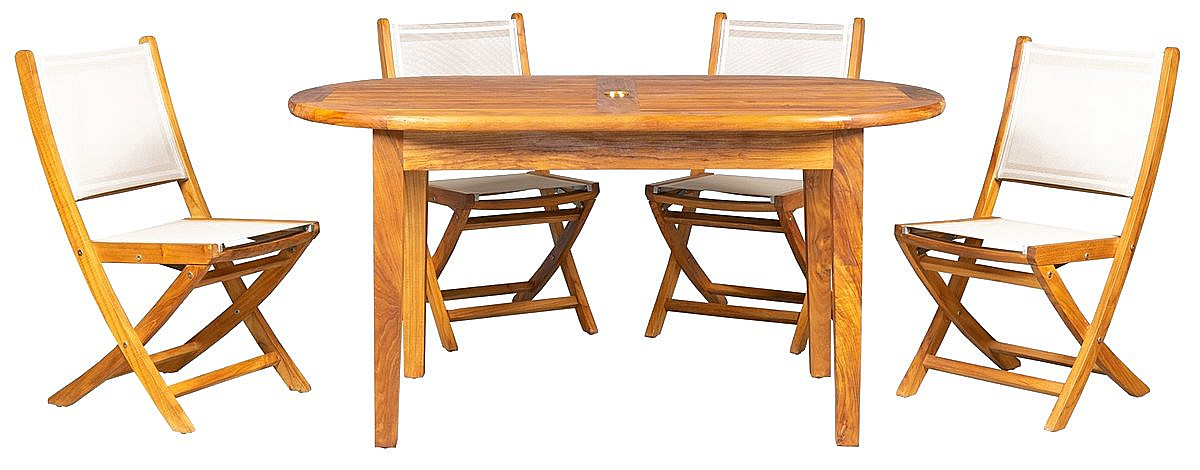 Sestava obsahuje: 1x Teakový stôl DANTE, 4x Teaková stolička ANNA