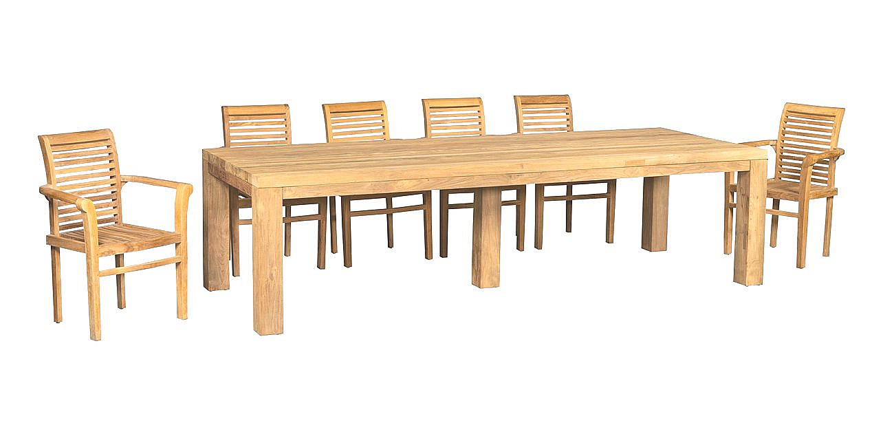 Sestava obsahuje: 1x Teakový stôl FLOSS RECYCLE, 10x Teakové kreslo NICE