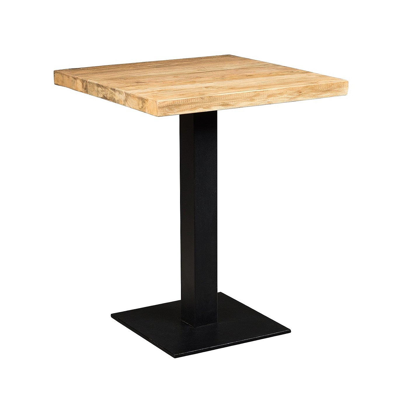 Jedálenský stôl CALVIN s doskou z masívneho recyklovaného teaku 60 x 60 cm a liatinové nohy v čiernej farbe. Hrúbka stolovej dosky je 4 cm. Liatinová noha je vhodná ako do interiéru, tak aj na vonkajšie použitie. Materiál odolný proti korózii, UV žiareniu a poveternostným vplyvom. Možnosť úpravy stojana pri malej nerovnosti podlahy pomocou nivelačných nožičiek. Každá doska stola je jedinečná, je jej ponechané charakteristické opotrebenie dreva. Výrobok z tohto teakového dreva je eologický. Staré drevo má veľkú charizmu a krásu.