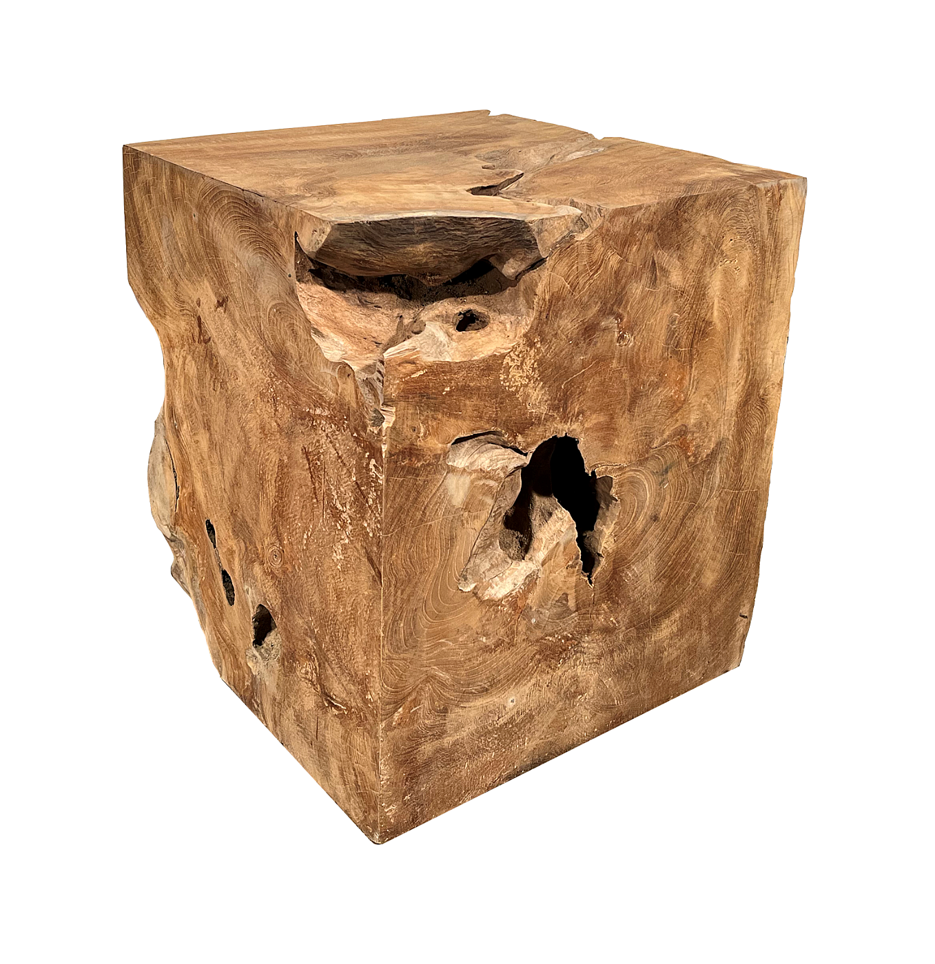 Táto originálna plastika je vyrobená z koreňa teaku. Každý kus je unikátny a jedinečný svojim spracovaním. Svojou originalitou jednoducho doplní moderný štýl Vášho interiéru a môže byť použitá ako črepník. Kocka je vhodná na použitie ako malého stolíka. Povrch je vyleštený, príjemný na dotyk.