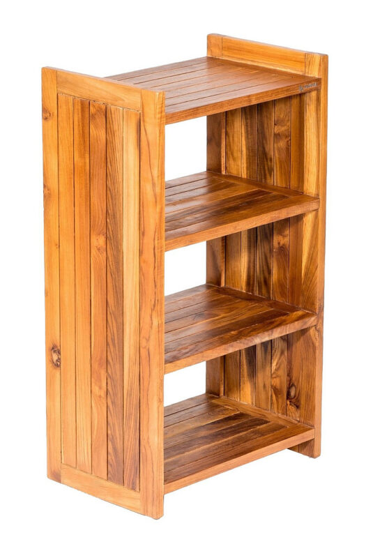 Veľmi praktický regál DAN vyrobený z kvalitného indonézskeho teaku. Krásna drevená komoda so 4 regálmi. Príjemný a ľahko použiteľný nábytok, ktorý sa stane vďaka svojmu spracovaniu ozdobou Vášho domova. Teaková komoda sa hodí do predsiene, obývacej izby alebo na terasu. Náš záhradný nábytok je určený hlavne na vonkajšie použitie. Ošetrený teakovým olejom.