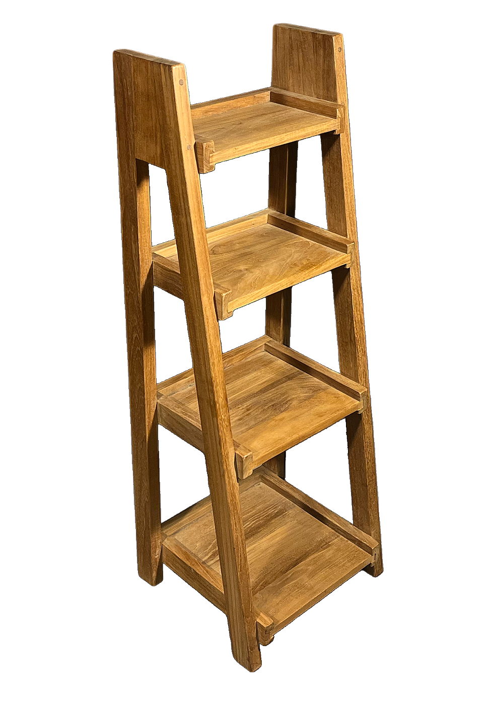 Veľmi praktický regál DONALD vyrobený z kvalitného indonézskeho teaku. Krásna drevená komoda so 4 regálmi. Príjemný a ľahko použiteľný nábytok, ktorý sa stane vďaka svojmu spracovaniu ozdobou Vášho domova. Teaková komoda sa hodí do predsiene, obývacej izby alebo na terasu. Nábytok je určený hlavne na vonkajšie použitie.