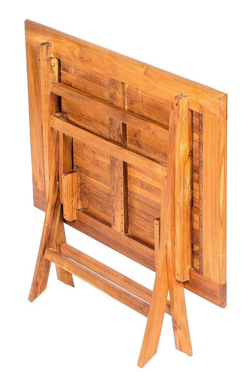 Skladací stôl VASCO vyrobený z kvalitného indonézskeho teaku. Náš systém Vám umožní zloženie stola v priebehu niekoľkých sekúnd. Premiestňovanie stola je veľmi jednoduché. Náš drevený nábytok je navrhnutý hlavne na vonkajšie použitie s dlhou životnosťou. Doska záhradného stola má hrúbku 3,5 cm. Vasco stoly sú populárne na terasách aj v reštauráciách. Ošetrený teakovým olejom.