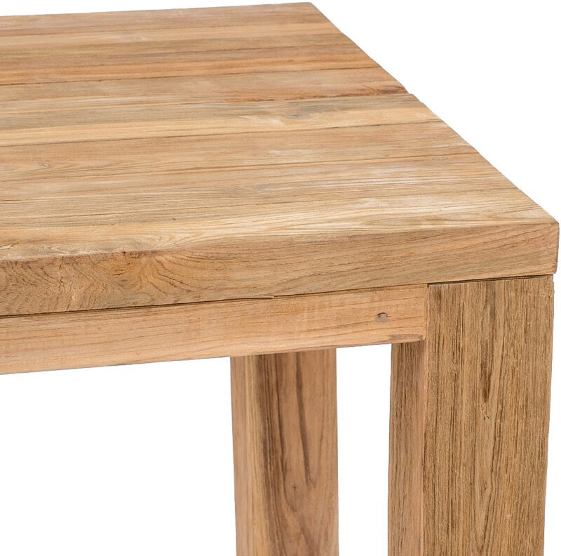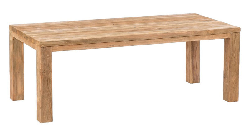 Masívny stôl FLOSS RECYCLE vyrobený z kvalitného recyklovaného indonézskeho teaku. Tento stôl sa stane dominantou vášho domova. Stôl s dosiek je určený hlavne na vašu terasu alebo záhradu. Výrobok z tohto teakového dreva je ekologický, jedná sa o znovu využité drevo. Každý kus nábytku je jedinečný, je mu ponechané charakteristické opotrebenie. Drevo má veľkú charizmu a krásu. Vďaka ručnej výrobe je každý kus unikát.