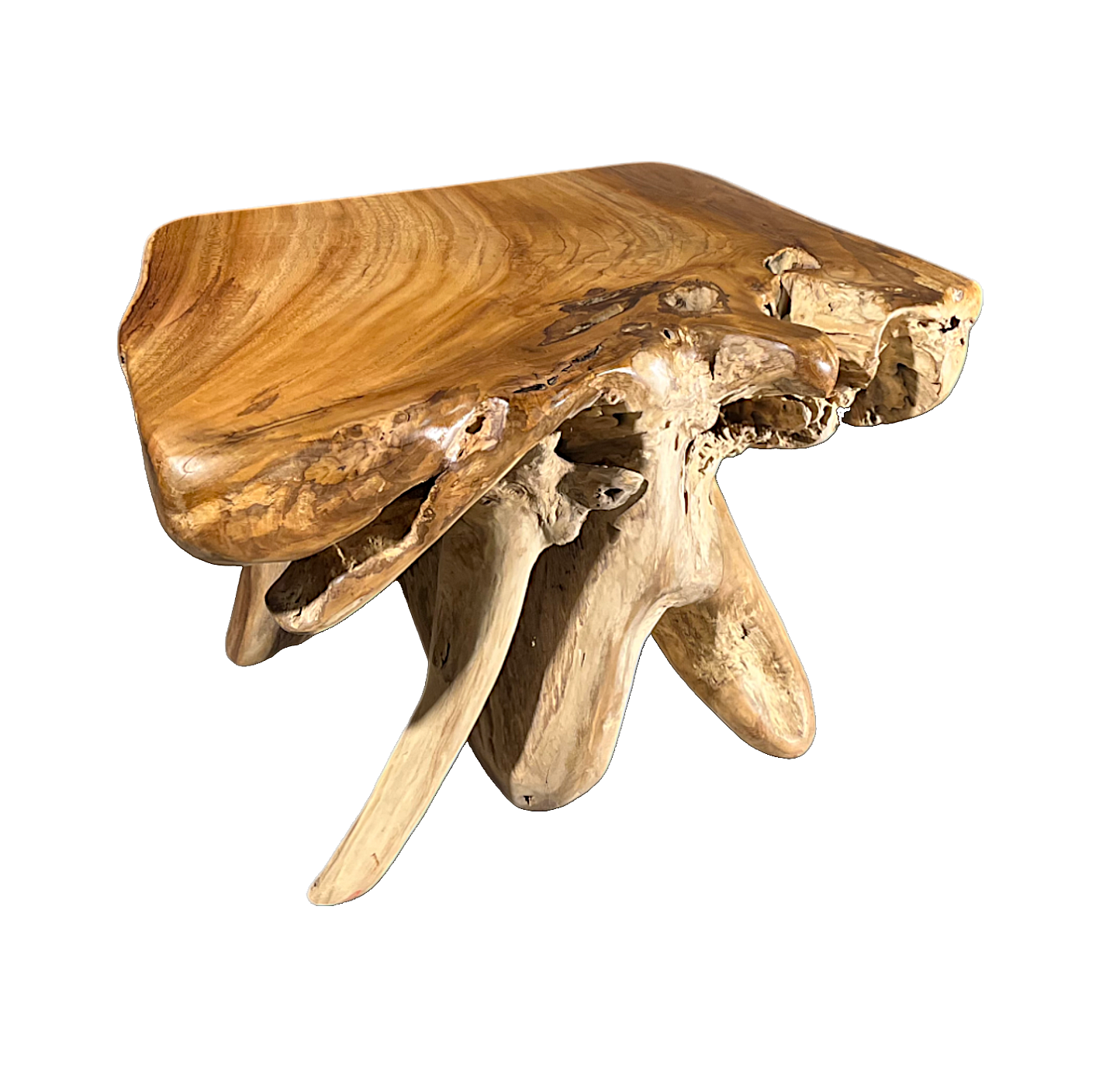 Tento originálny stolík, vyrobený z koreňového systému teaku, prináša jedinečný prvok do moderného interiéru vašej obývačky či pracovne. Konferenčný stolík je zhotovený z jedného kusa koreňa teakového stromu, čo zaručuje unikátnu štruktúru a tvar. Stolík je ošetrený olejom, čo zaisťuje jeho dlhú životnosť a krásny vzhľad.