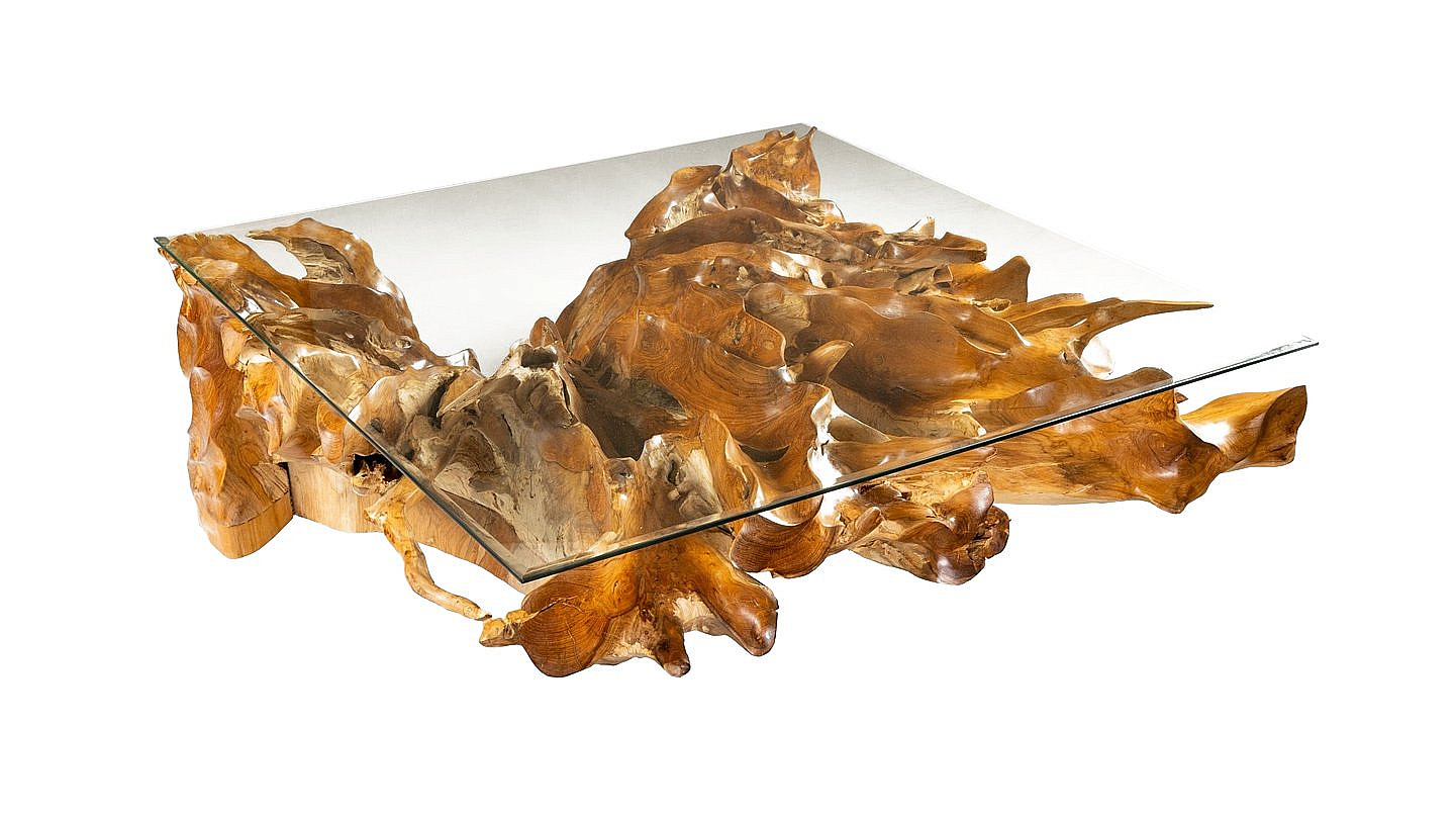 Tento originálny stolík je vyrobený z tíkového stromu. Každý stôl je svojím prevedením unikátny a výnimočný. Je to precízna remeselná ručná práca z jedného kusa koreňa. Svojou originalitou jednoducho doplní moderný štýl Vášho interiéru. Ponúkame rôznorodé štruktúry a tvary dreva. V našej ponuke určite nájdete typ podobného stola, ktorý zaujme. Stolík je dodávaný s pevnostným 8 mm sklom.