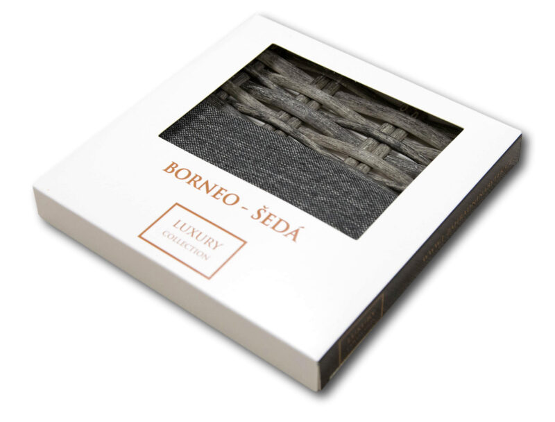 Pripravený set vzoriek slúži na získanie maximálneho dojmu z kvality materiálov umelého ratanu a látky, z ktorých je zostava BORNEO LUXURY vyrobená než si ju objednáte.