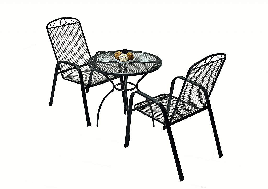 Sestava obsahuje: 1x Kovový stôl STEEL (ø70 cm), 2x Kovové kreslo GREY (čierna)