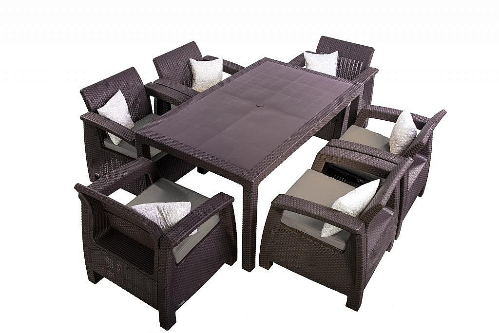 Kreslo je dodávané v demontovanom stave. Zloženie zaberie niekoľko málo minút. Sestava obsahuje: 1x Záhradný stôl z umelého ratanu MANHATTAN 161×95 cm (hnedý), 3x Záhradná ratanová zostava CORFU DUO (hnedá)