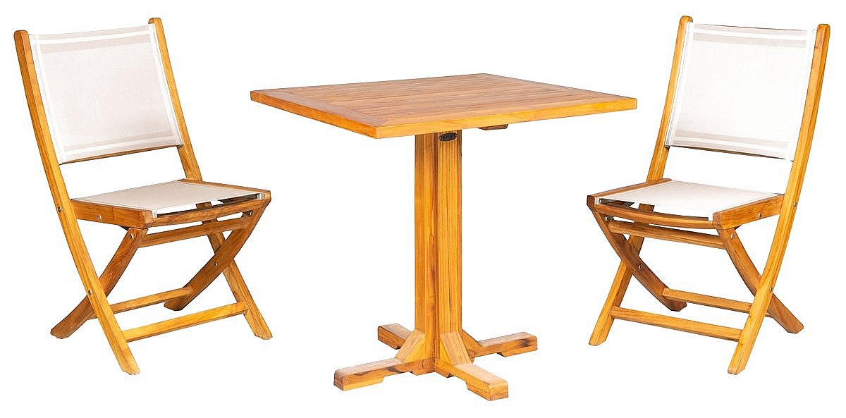 Sestava obsahuje: 1x Teakový stôl DANTE, 2x Teaková stolička ANNA