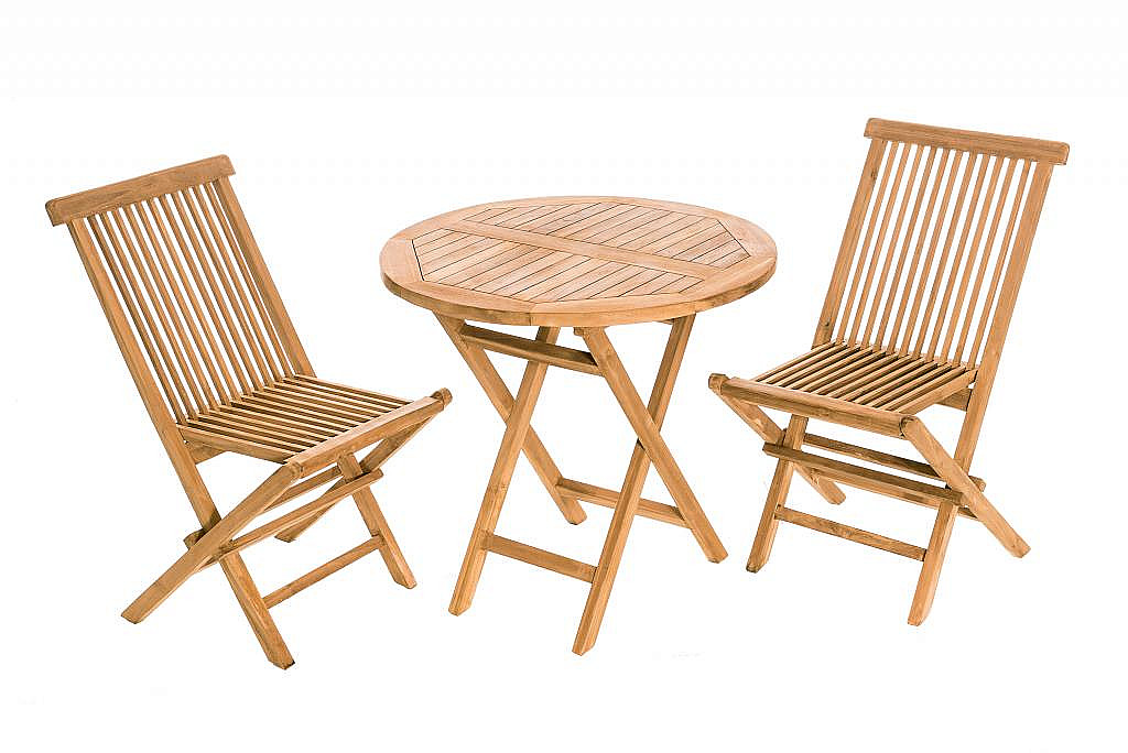 Použitie: interiér, exteriér Sestava obsahuje: 2x Záhradná skladacia stolička s poduškou FOXI (teak), 1x Záhradný skládací stôl IVORY ⌀ 80 cm (teak)