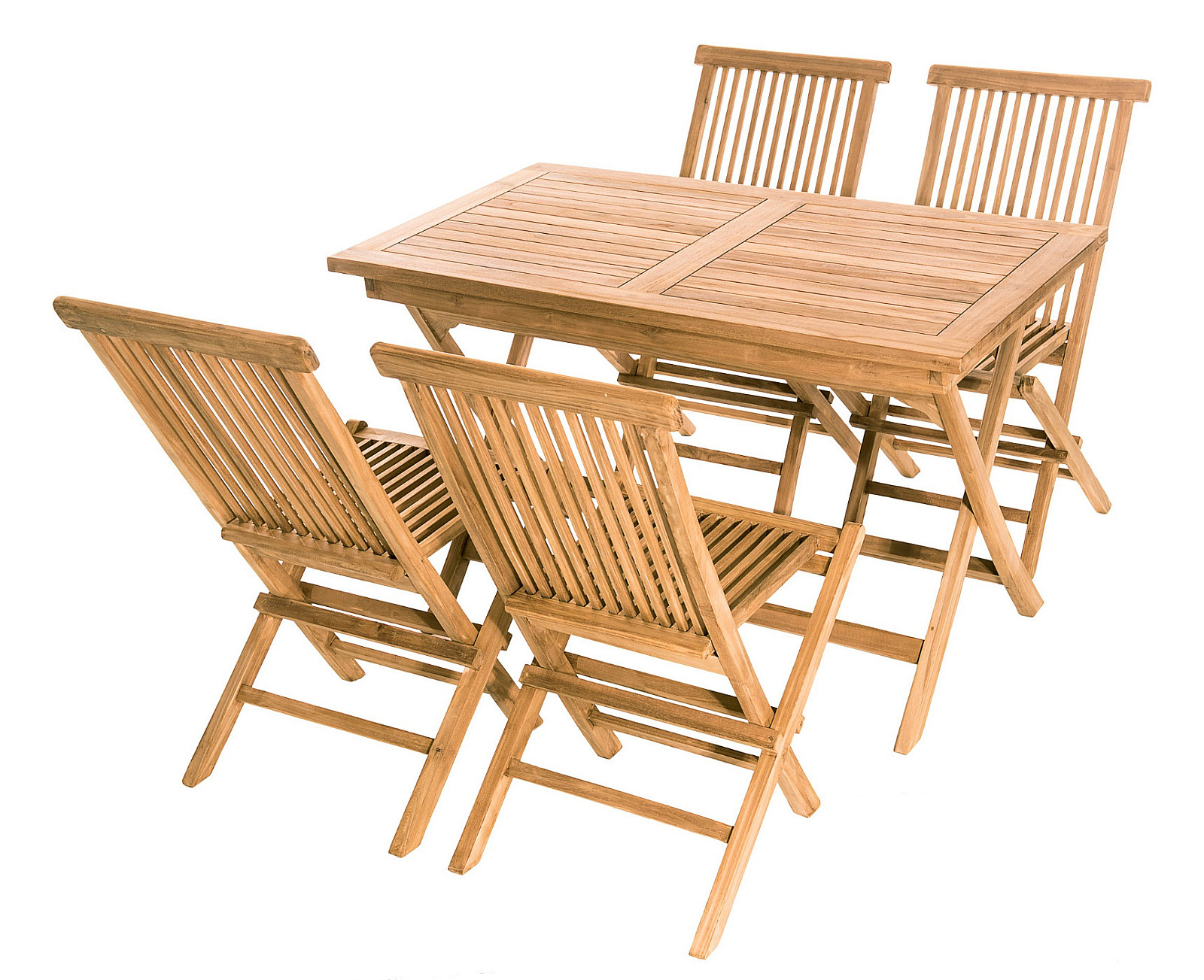 Použitie: interiér, exteriér Sestava obsahuje: 1x Záhradný skladací stôl obdĺžnik COIMBRA 120 x 70 cm (teak), 4x Záhradná skladacia stolička s poduškou FOXI (teak)