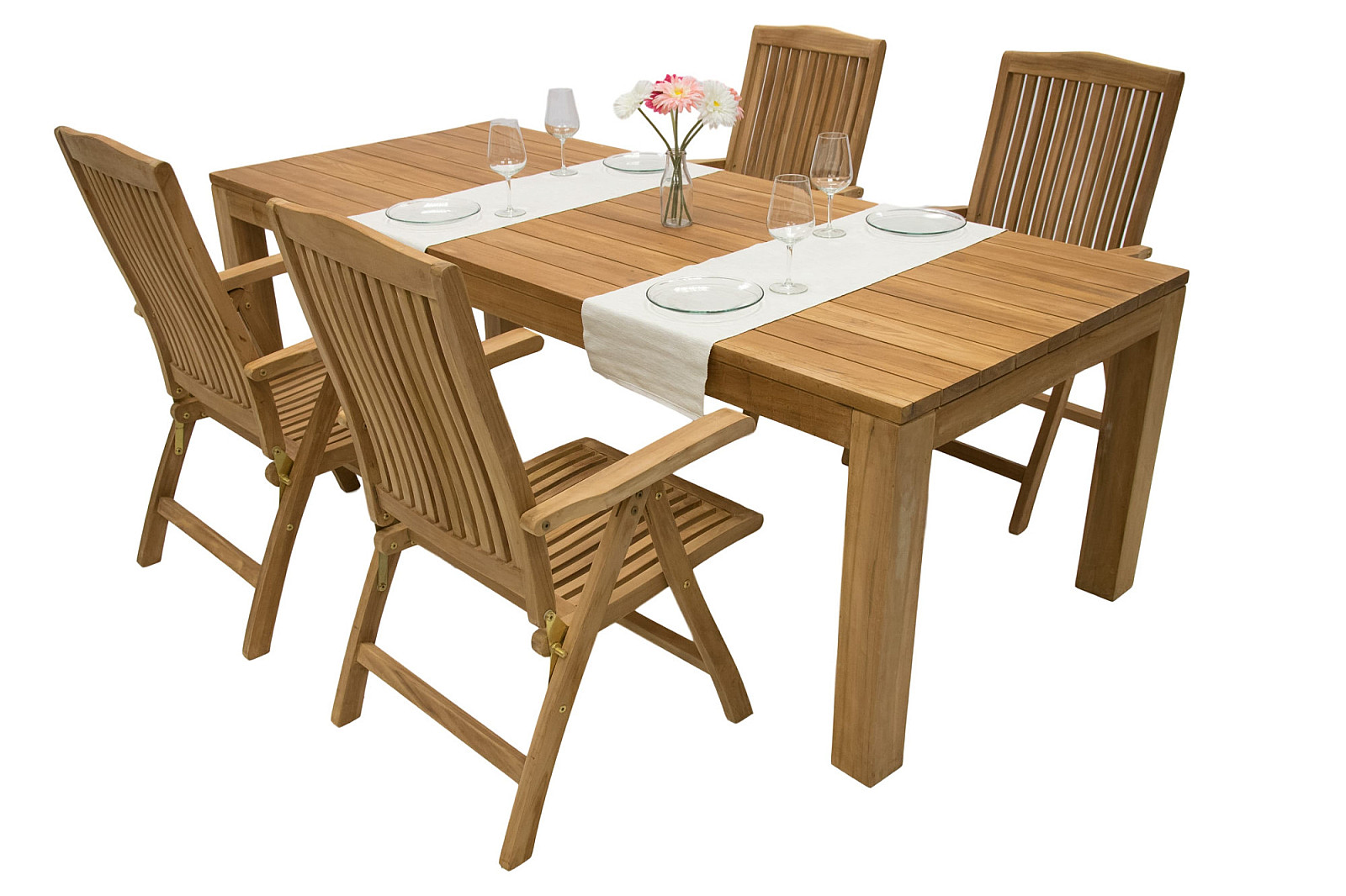 DEOKORK Záhradná teaková zostava MONTE LAGUNA 200 4x Záhradné polohovacie kreslo LAGUNA