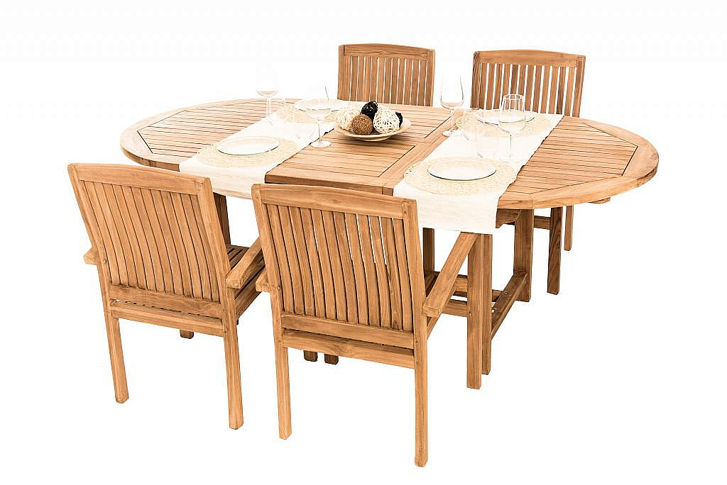 Aj napriek tomu sa jedná o odolný prírodný materiál, odporúčame nábytok raz ročne impregnovať teakovým olejom (viď príslušenstvo). Sestava obsahuje: 1x Záhradný oválný stôl SANTIAGO 160/210 x 100 cm (teak), 4x Záhradné pevné kreslo HARMONY (teak)